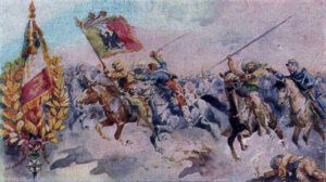 Le 2ème Hussards déplore 23 officiers tués ou blessés sur 32 et 83 hommes hors de combat à l’issue de ce combat de cavalerie qui a vu s’opposer 2900 cavaliers allemands à 2500 français sans véritable résultat. Après les combats de Saint Privat (18 août), enfermé avec l’armée de Metz, le 2ème contribua à plusieurs sorties, et se distingua notamment à Sainte-Barbe (30 août), Servigny-les-Sainte-Barbe (31 août) et Sainte Ruffine (28 septembre). Le 2ème Hussards qui a sacrifié ses chevaux pour atténuer la disette de la population messine, mérite le titre attribué par le général de Cissey de « 5ème régiment d’infanterie de sa division ». Le 27 octobre 1870, le Régiment fut compris dans la reddition de la place, mais de nombreux officiers s’évadèrent pour reprendre le combat.